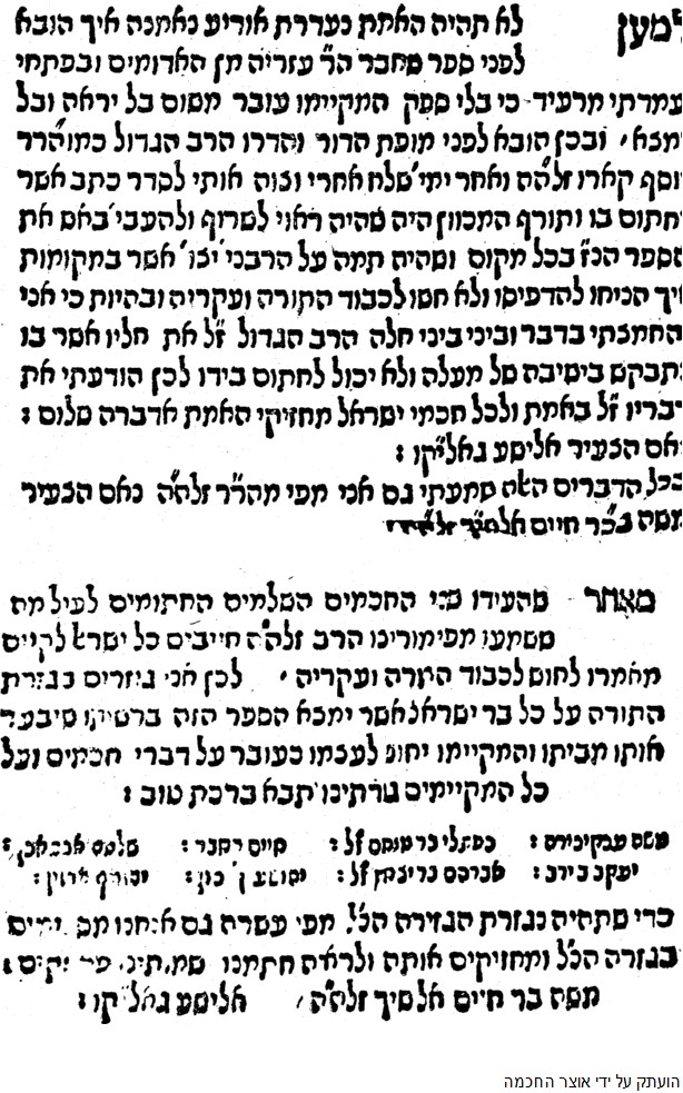 The Beis din of Tzefas. צפת . The proclamation publicizing the חרם urged the Reb Yoseph Karo. See below for a photo of the famed proclamation.
