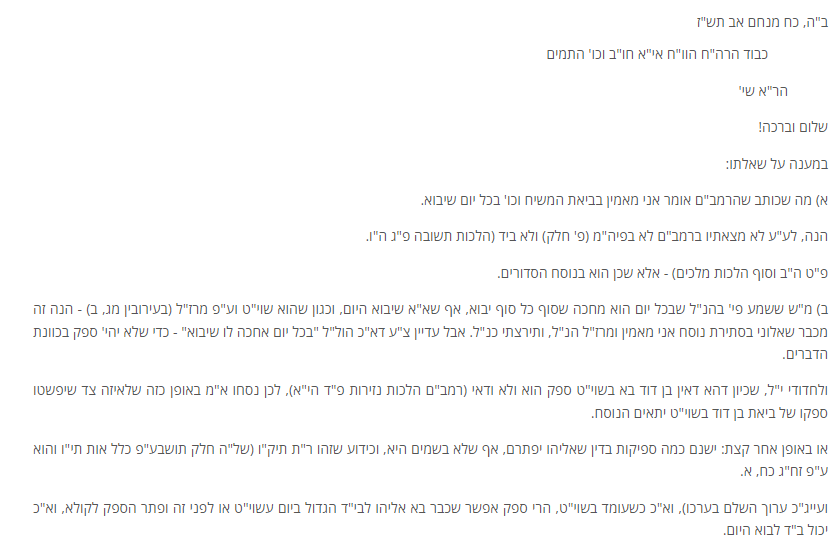 8- We concluded with an interesting letter of the Rebbe to Reb Avrohom Hecht in 1947. Igros 2. #288.