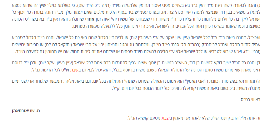 9- In a post script the Rebbe writes that ‘Rabbi Quint just told me that some have the מנהג of not saying the above passage on Shabbos because of the above issue’.