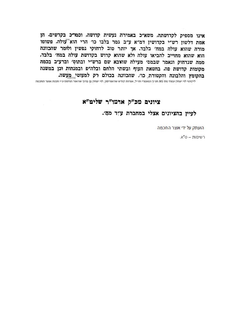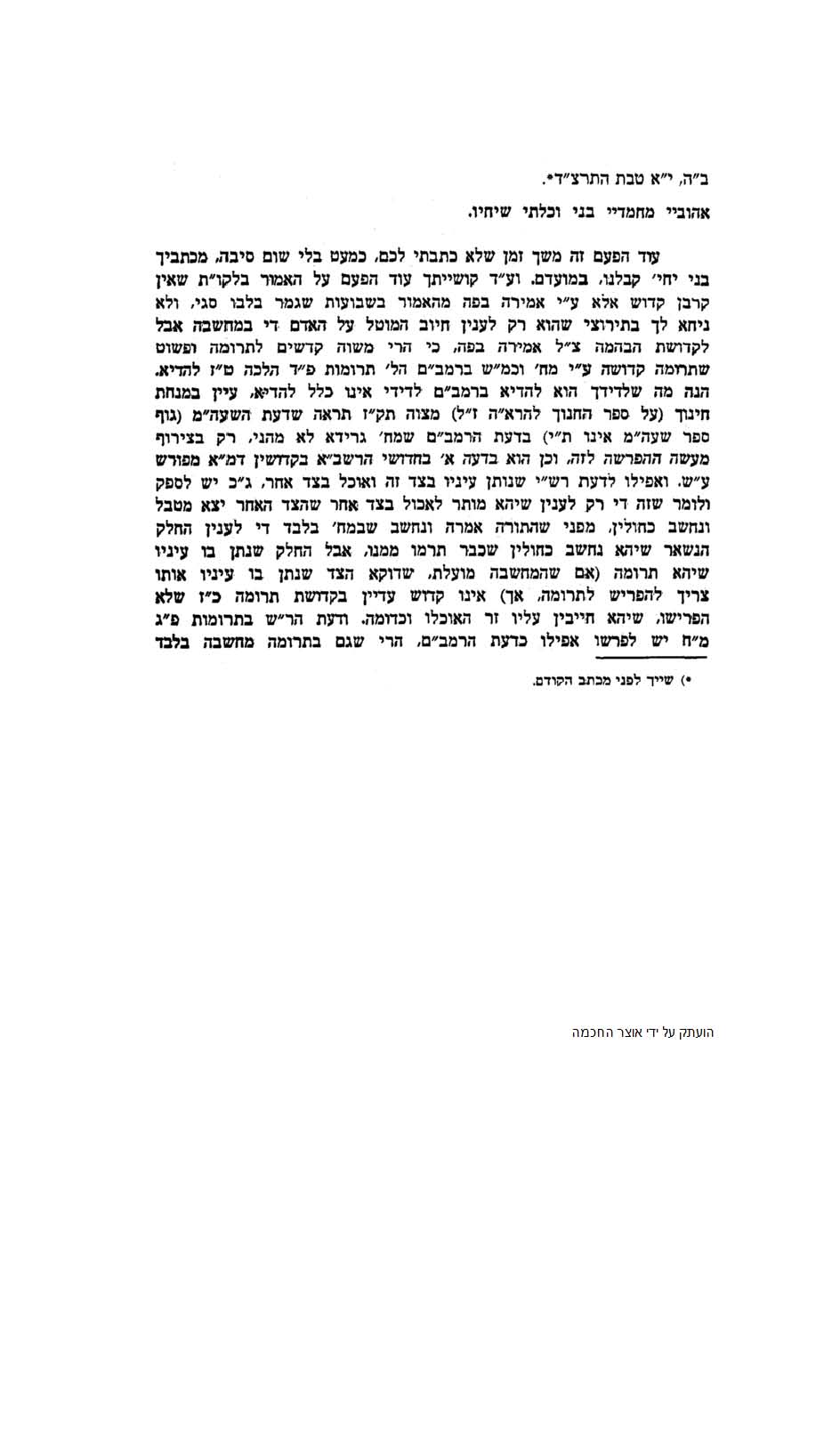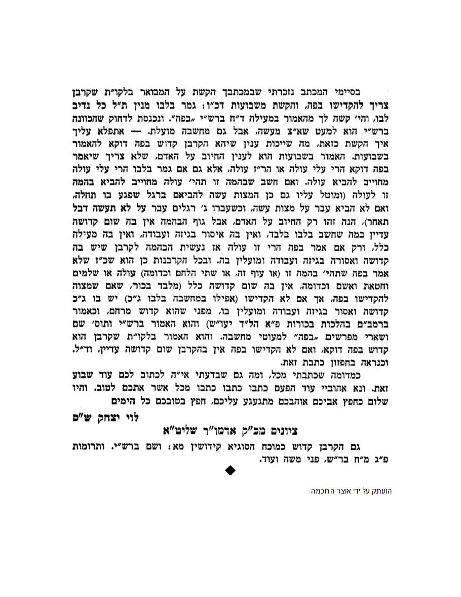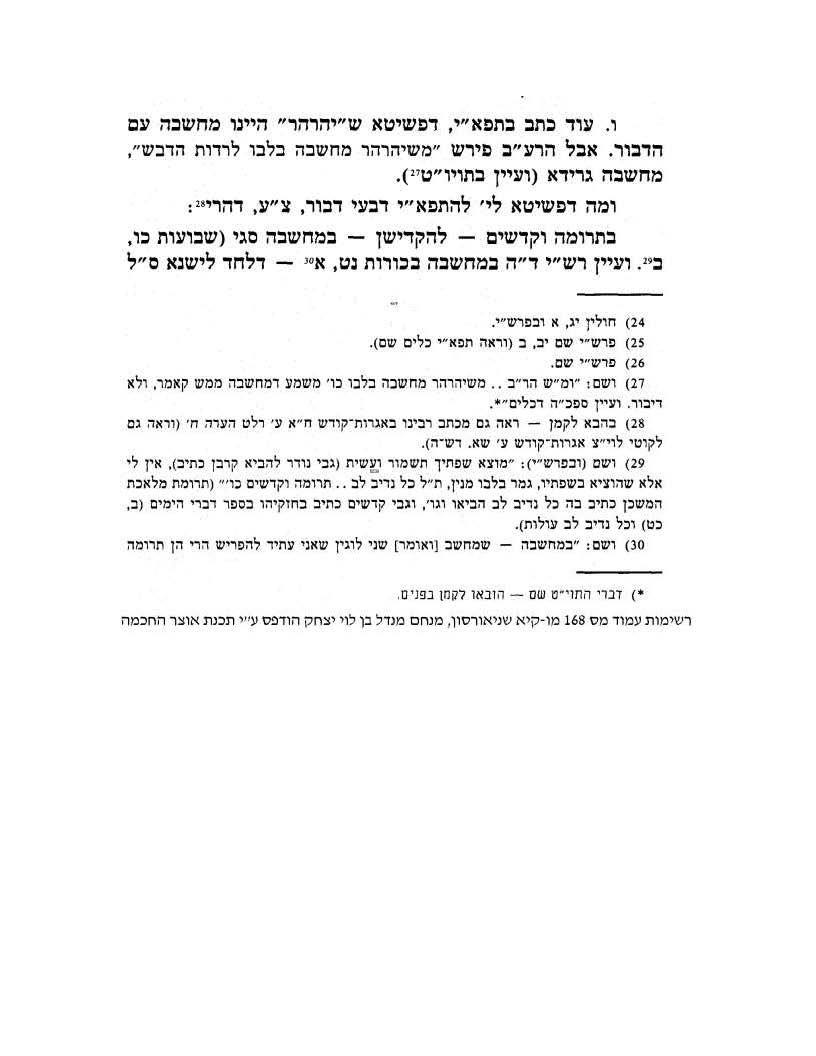 We spent a while going over the long history of the Rebbe’s writing on this issue. His letters to his father Reb Levik. The responses of Reb Levik. The footnotes. The Rebbe’s foot note to Likutei Torah. His reference to “my notebook regarding Mach’shovo”.