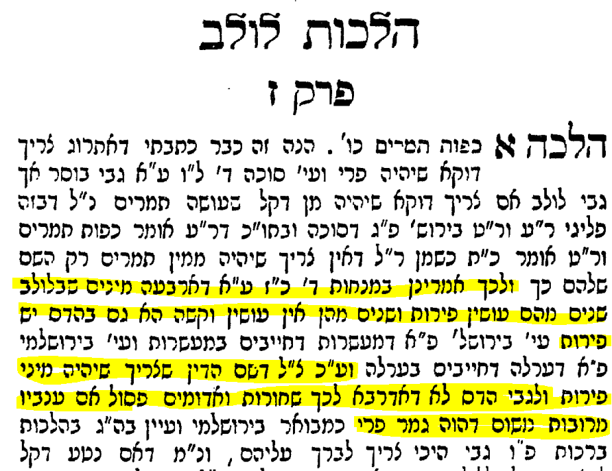 One item is the חסר, – a piece missing from the Esrog which will be discussed by the גמרא further on.