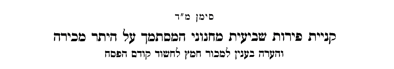 The dispute in our גמרא between Reb Elazar and Reb Yochanan is what process works with פירות שביעית for this transfer to take effect. Only thru a sale or also with a simple in-house חילול.