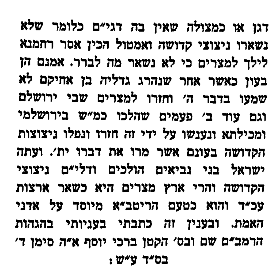 Consequently there currently is no prohibition to go back to Mitzrayim as there are lost sparks that need to be elevated.