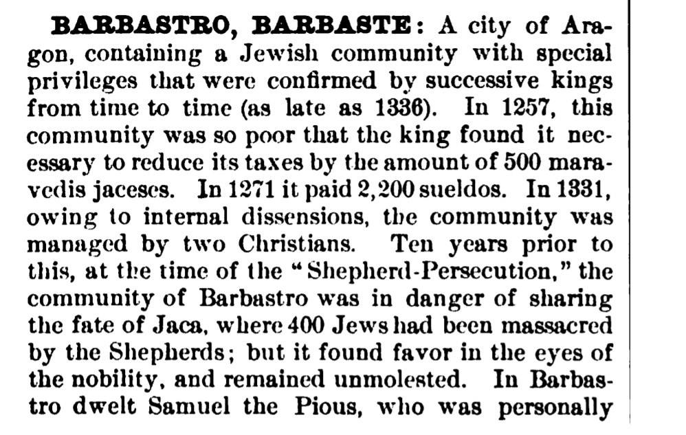 a reference to Reb Shmuel from Barbastro – a city in Aragon, Spain.